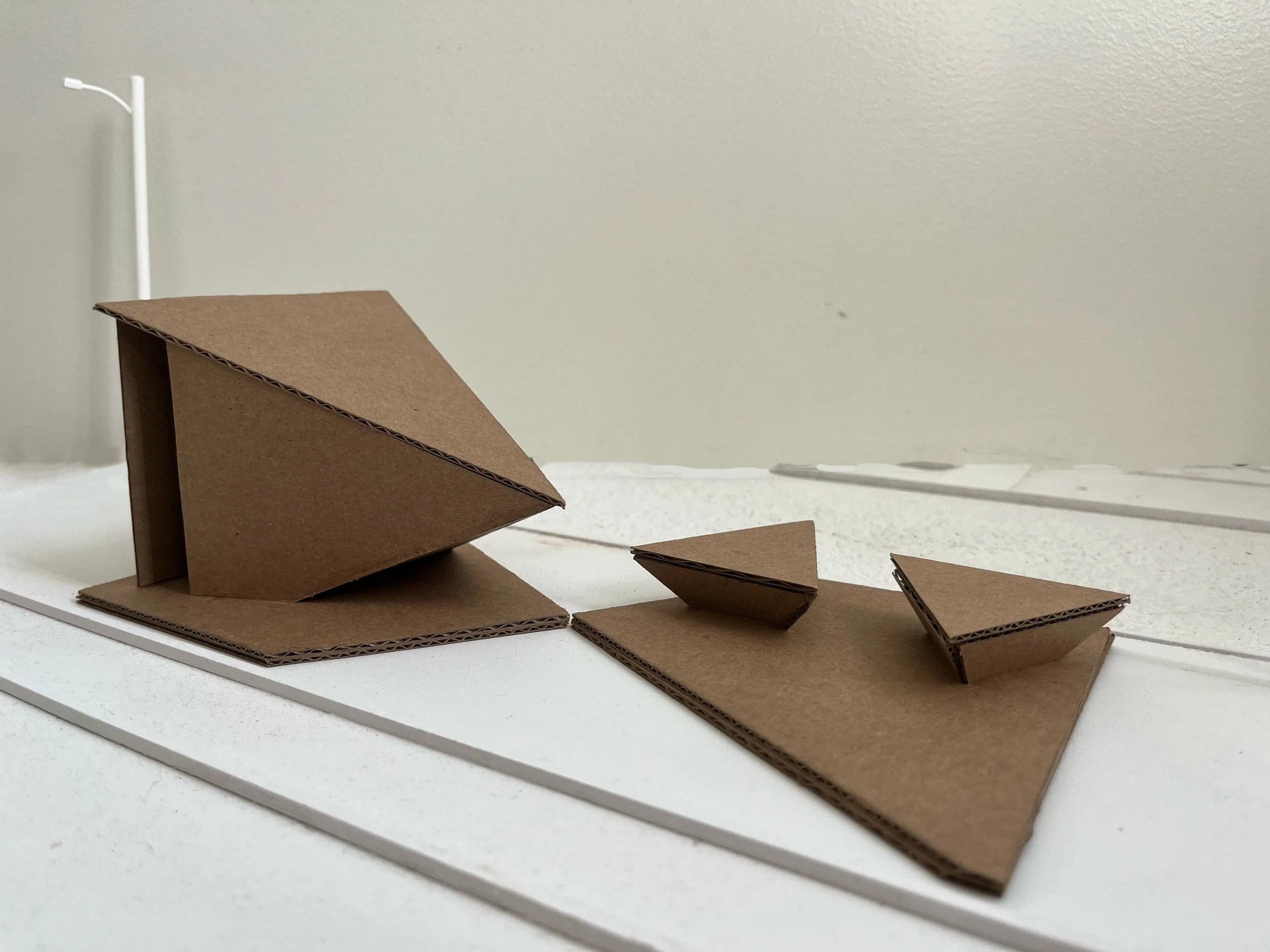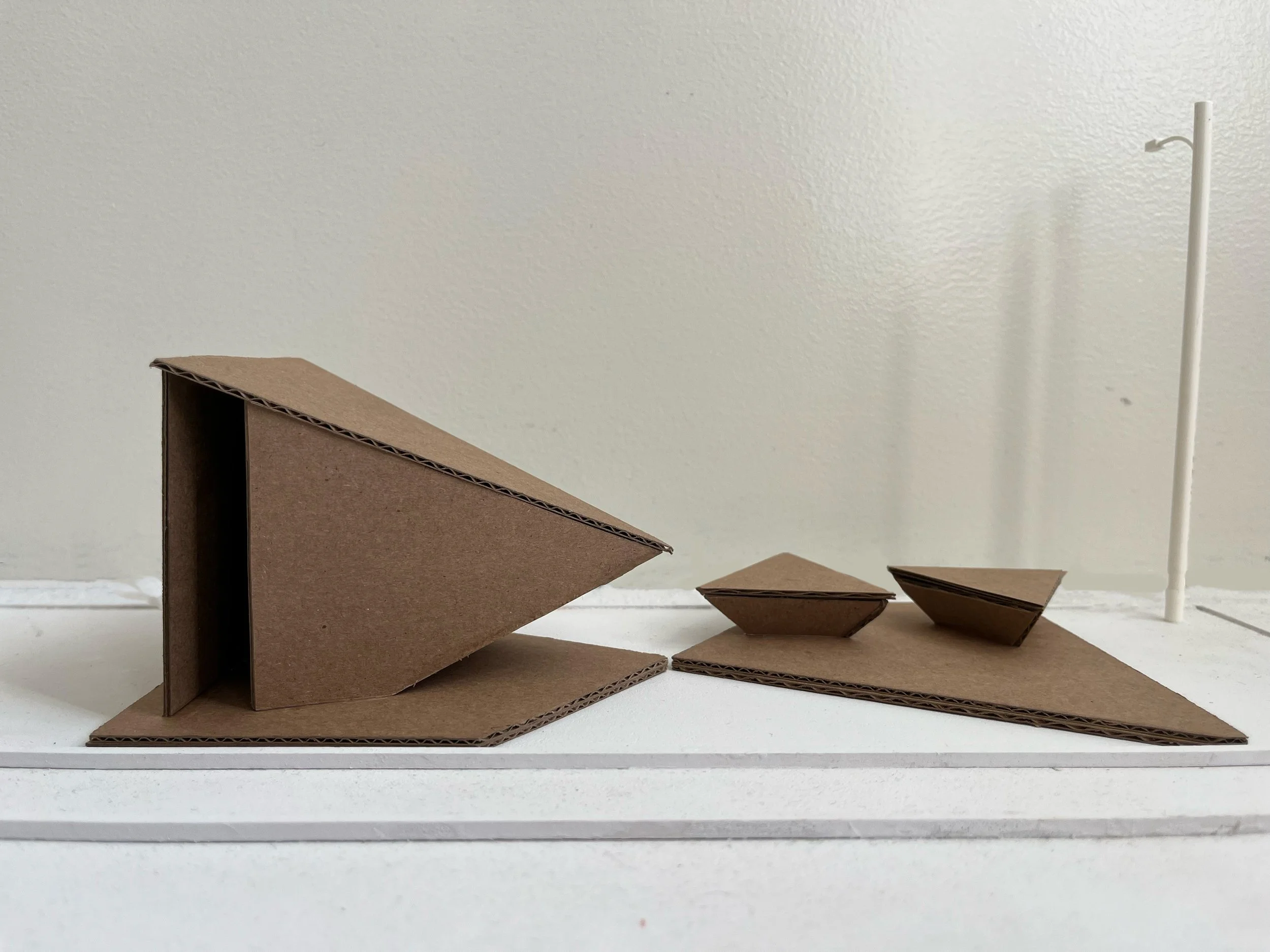 A reimagined New Orleans streetcar shelter designed as a walk-through camera obscura. Calibrated apertures project the outside world onto interior panels, so the passing streetcar enters the space as an upside-down moving image. Light, shadow, and geometry turn an everyday transit moment into an intimate act of viewing.